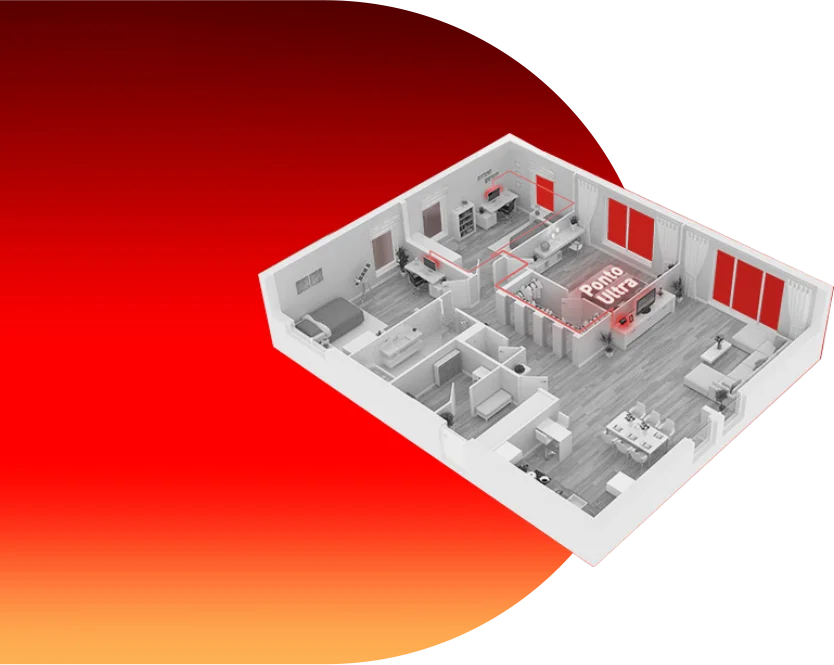 O Ponto Ultra é uma conexão de internet via cabo com ultra velocidade. Você utiliza os dispositivos que quiser, em diferentes cômodos da sua casa. Acabaram as preocupações com a falta de estabilidade na conexão.